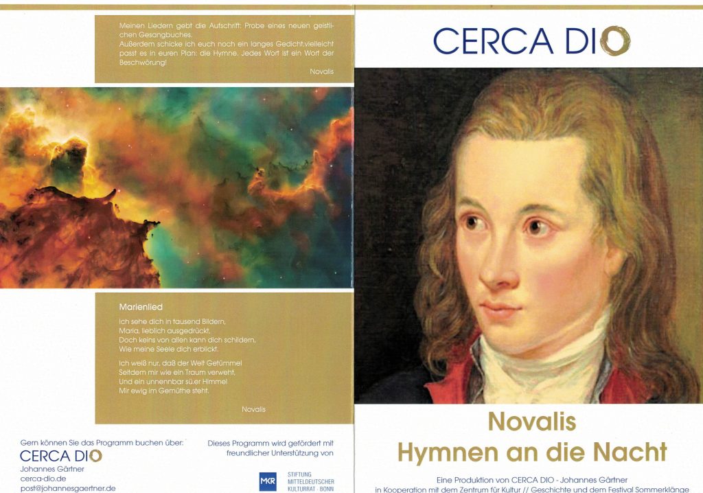 Antrag auf finanzielle Unterstützung für ein Konzert mit Gesang und Rezitation, welches Novalis in seinen Beziehungen zum Meißner Land darstellt.